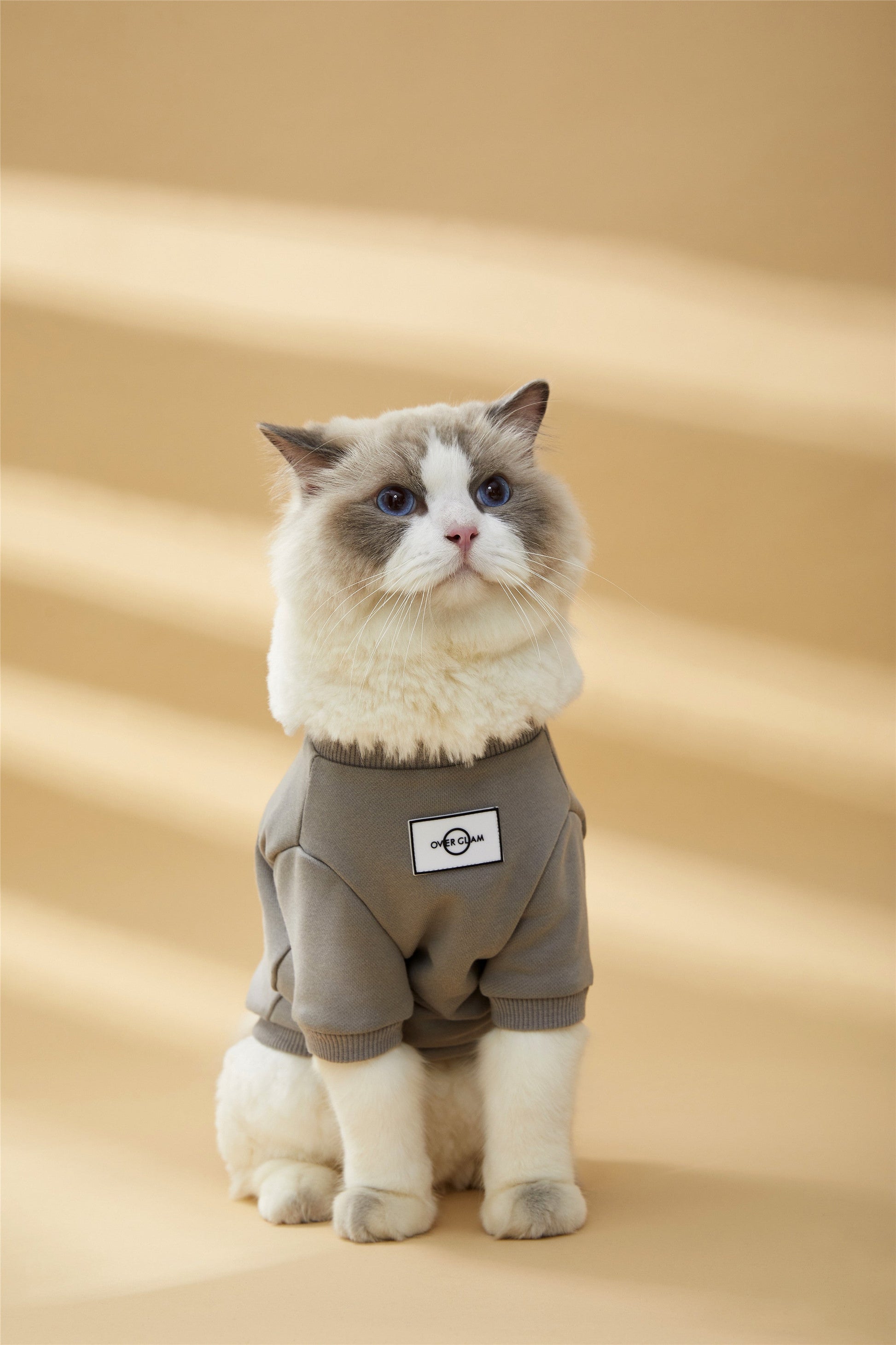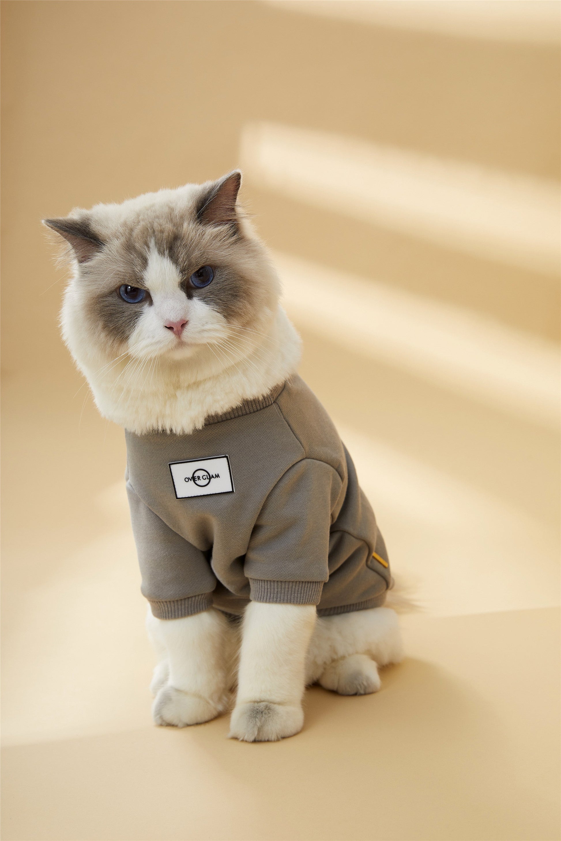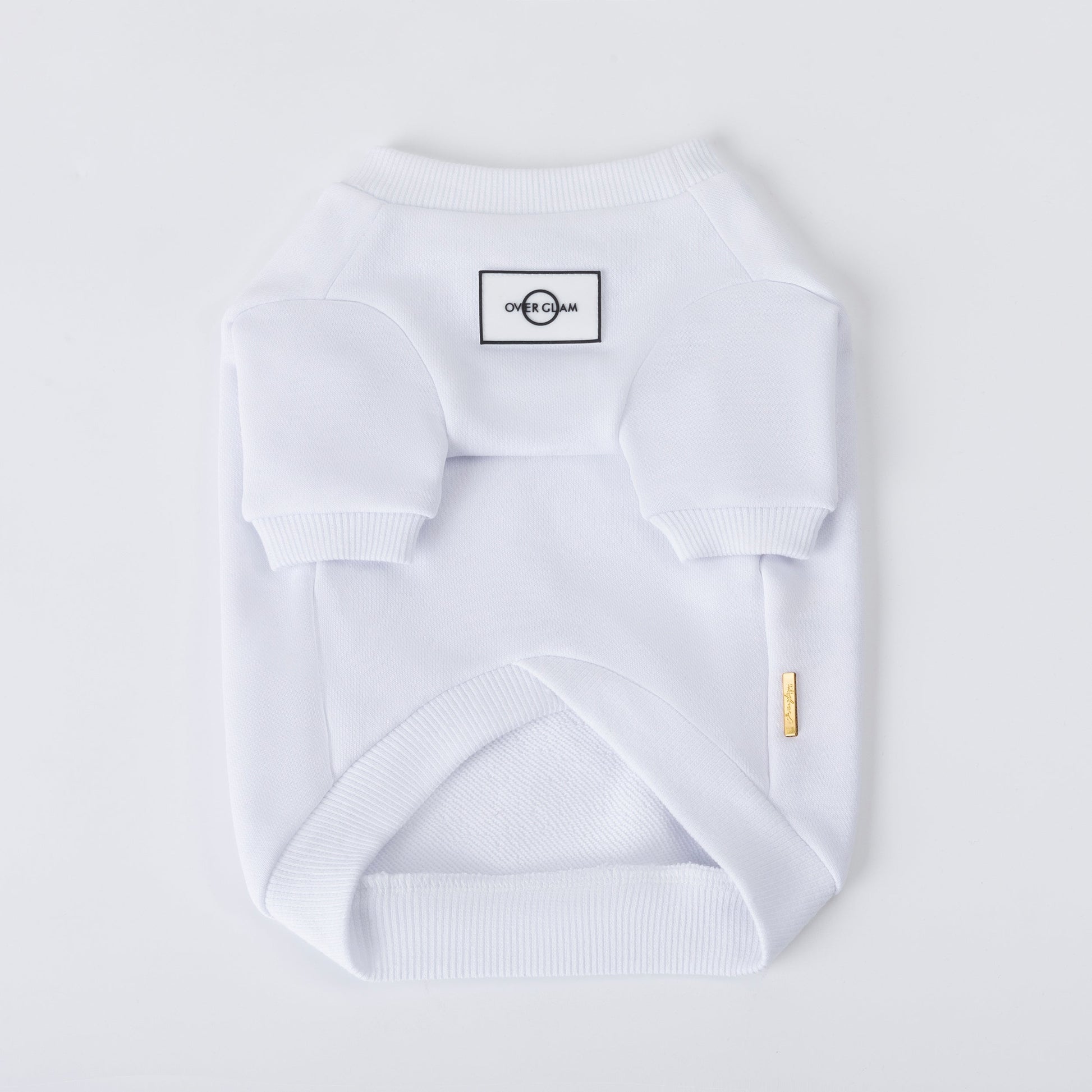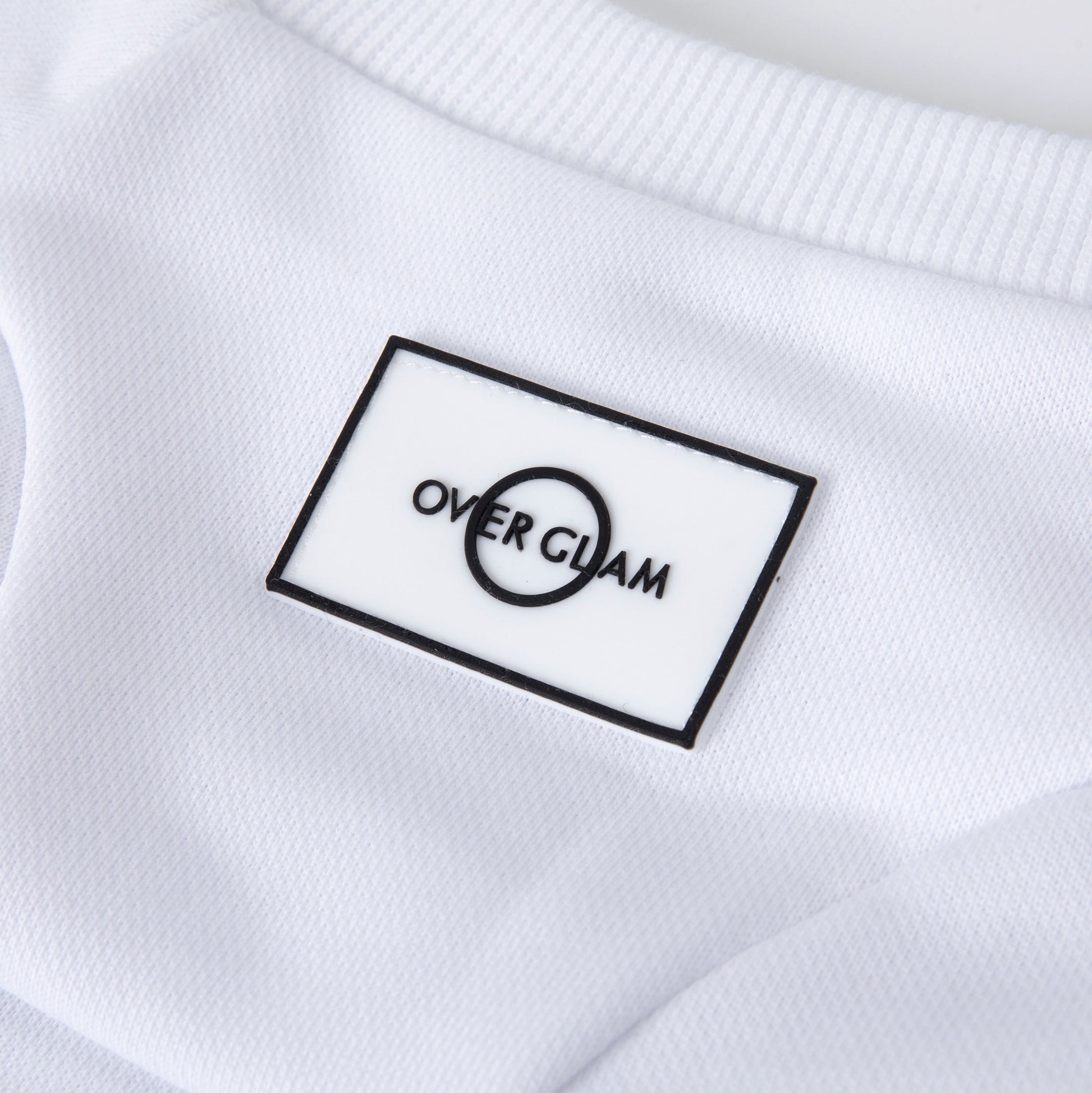 Classic sweatshirt with Overglam logo on front, with golden metal buckle on side. Available in grey, white and black.