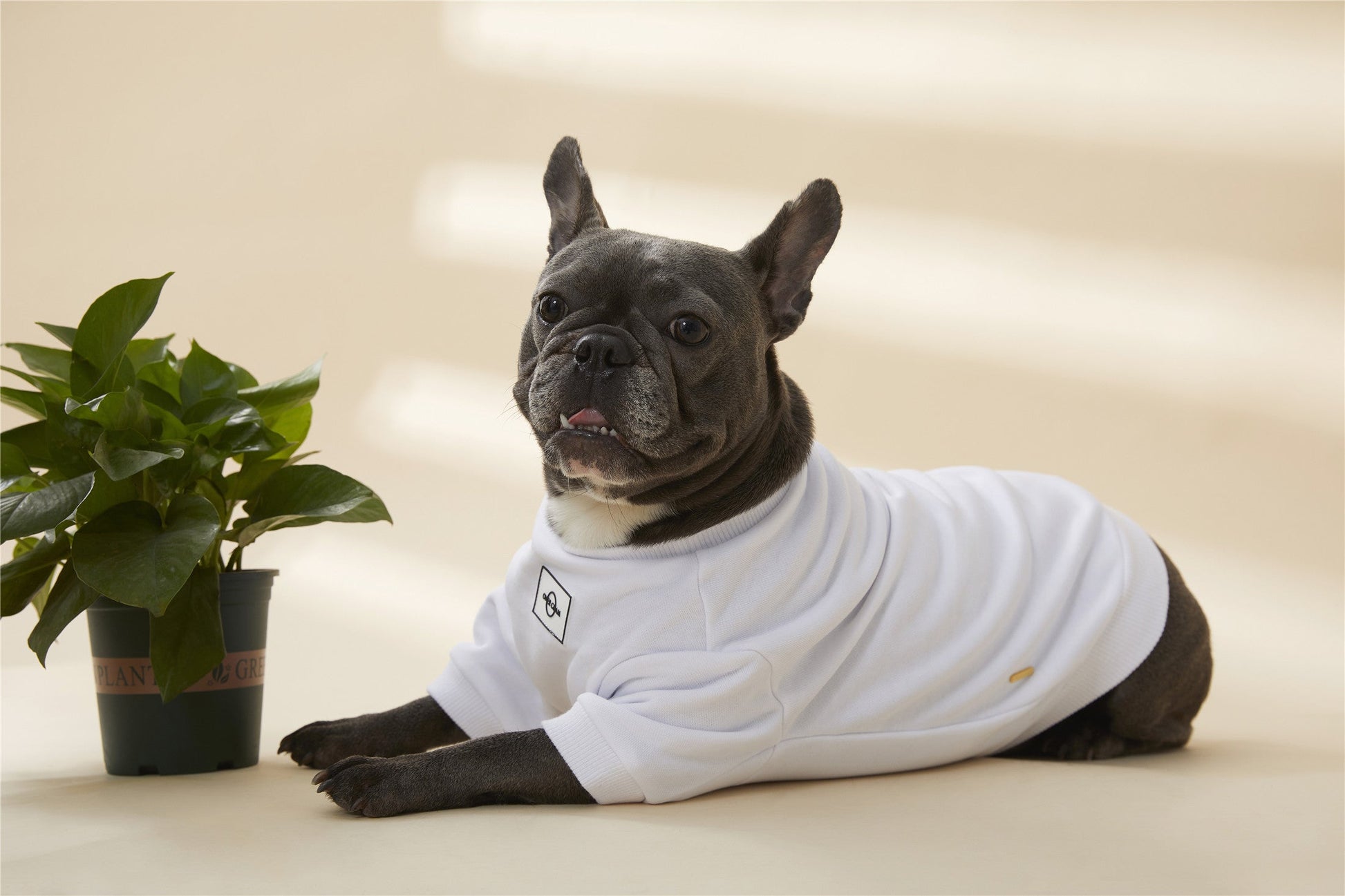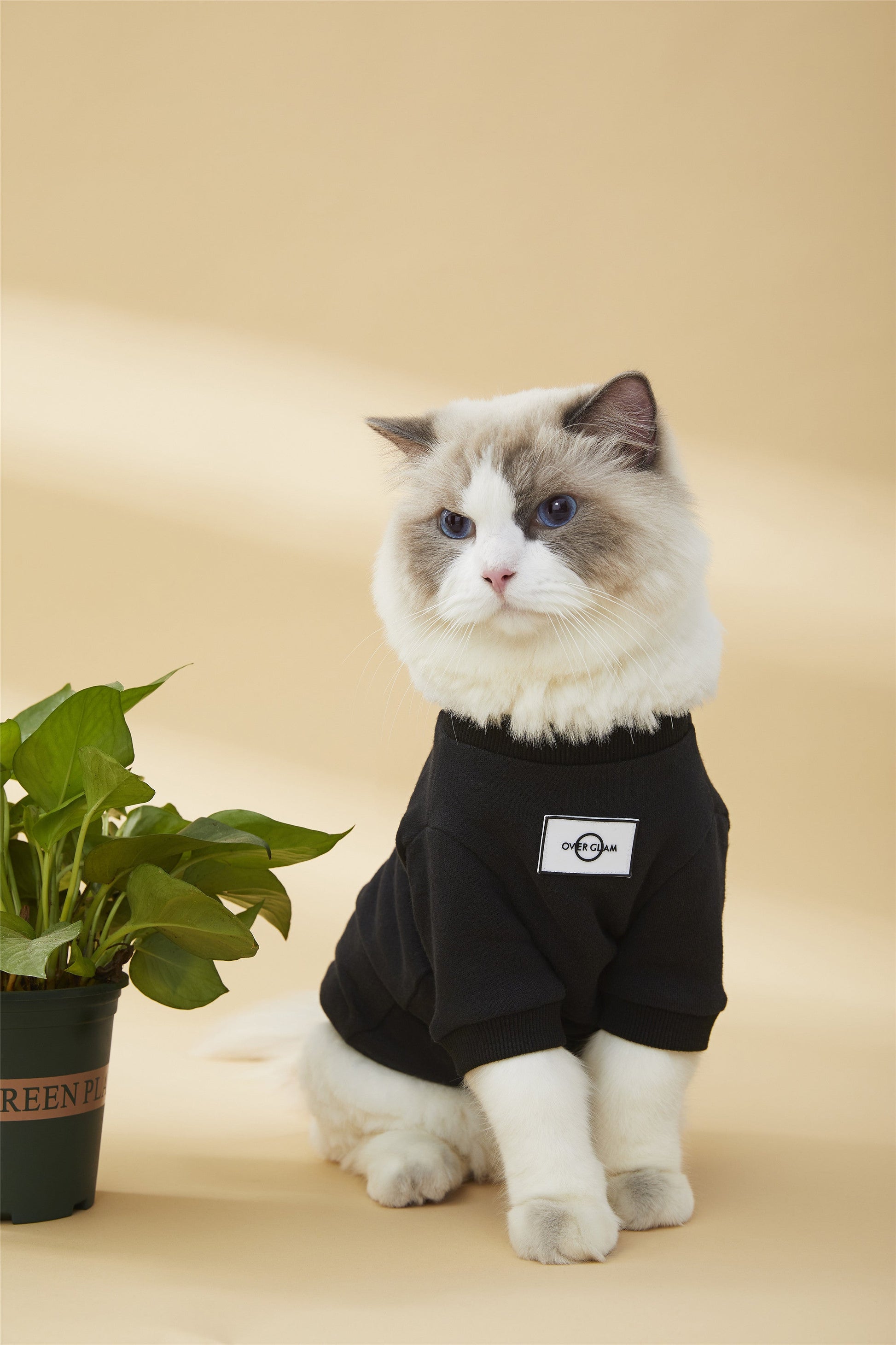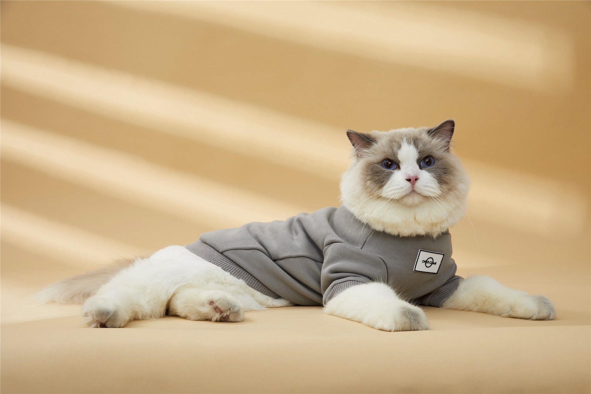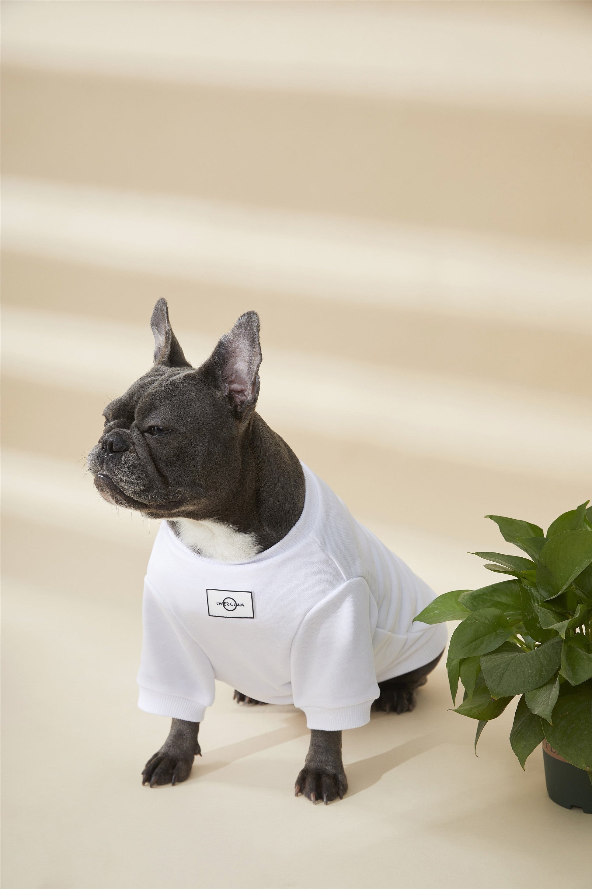 Classic sweatshirt with Overglam logo on front, with golden metal buckle on side. Available in grey, white and black.
